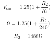 Where R1 and R2 are resistors, and I_adj is the current through the adj pin of the voltage regulator. The study found I_adj to be nominally 0 through testing.